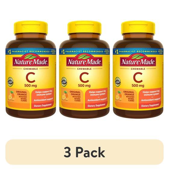 (3 pack) Nature Made Chewable Vitamin C 500 mg Tablets, Dietary Supplement, 70 Count