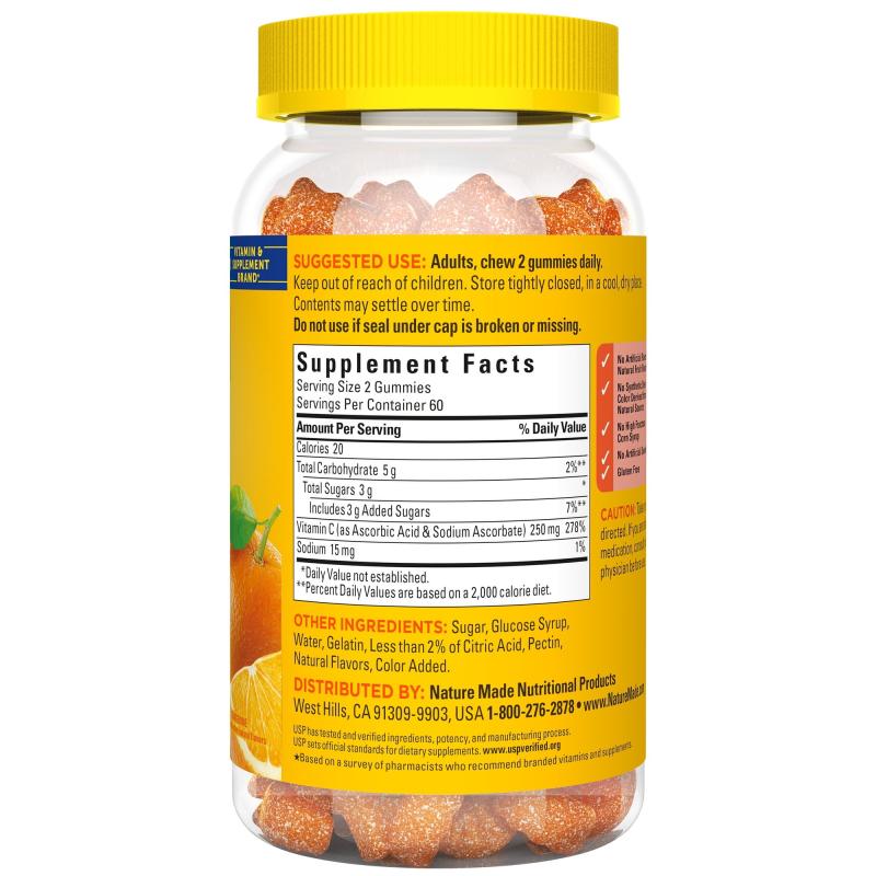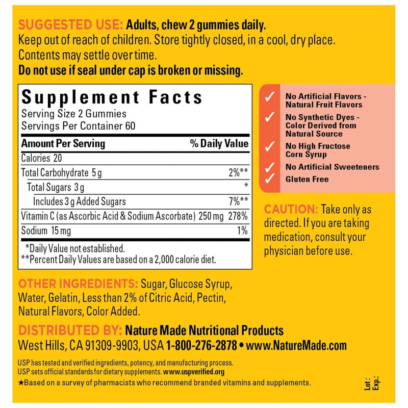 - Nature Made Vitamin C 250mg gummy vitamins support immune health and offer antioxidant support