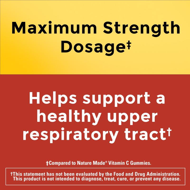- Immune support supplement: contains one 120 count bottle of Nature Made Vitamin C Maximum Strength Dosage(1) Gummies for a 30-day supply