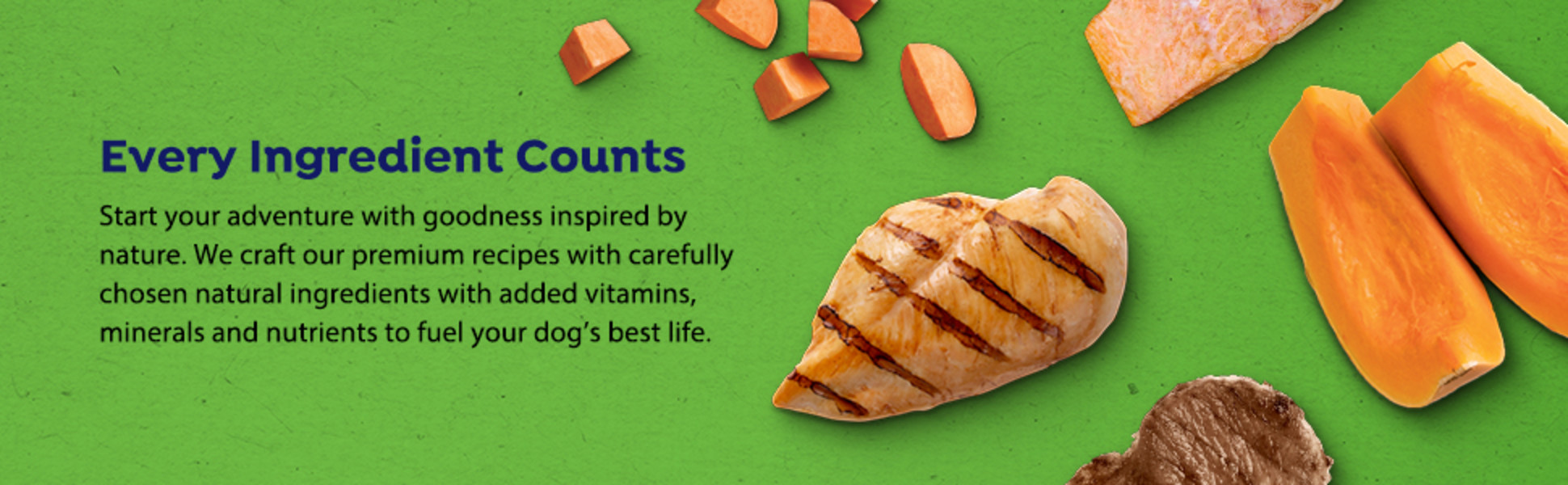 - Made with nutrient-dense carbohydrate sources like sweet potato and pumpkin instead of added corn or wheat