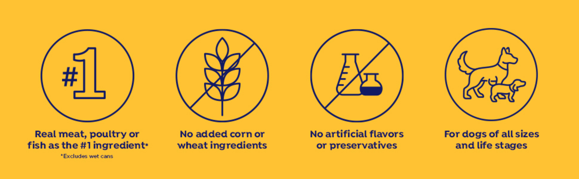 - Natural dog food with added vitamins, minerals and nutrients for maintenance of adult dogs