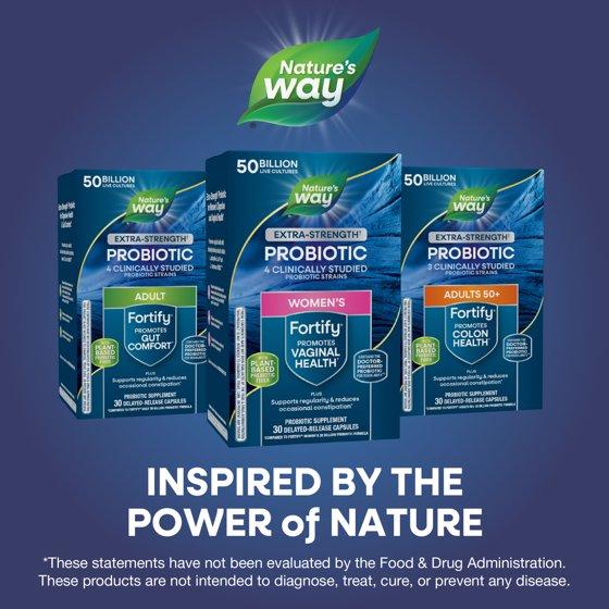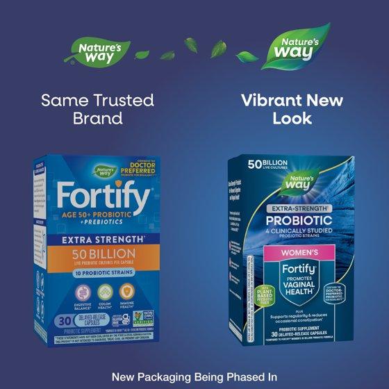 - Nature's Way Fortify Women's Extra Strength** Probiotic 50 Billion is formulated for women with 10 probiotic strains. Supports vaginal, digestive, and immune health.* Plus a plant-based prebiotic fiber, food for good bacteria*