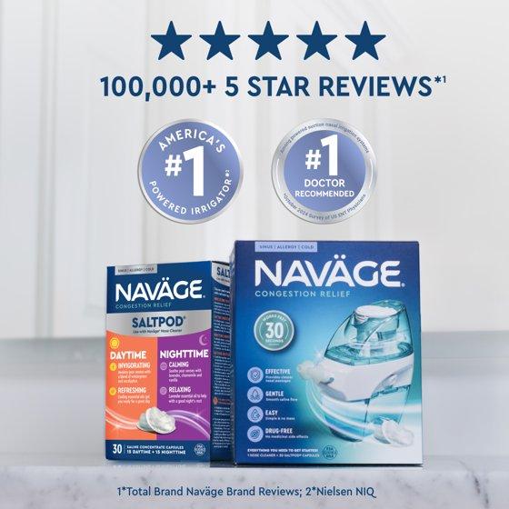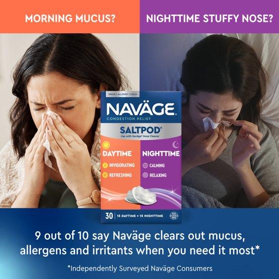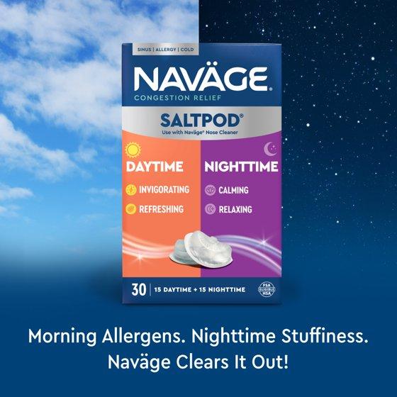 - Over a Million Customers have purchased the Navage Nose Cleaner to flush out congestion-causing mucus, allergens, and germs in as little as 30 seconds. Now, Navage Daytime & Nighttime SaltPods deliver a unique rinse experience formulated to invigorate your senses in the morning and soothe them at night.