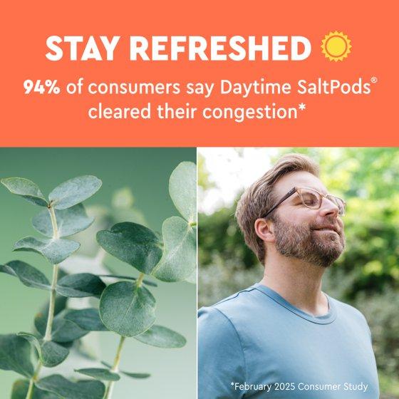 - Awaken Your Senses with a Daytime SaltPod rinse. Wintergreen delivers a cooling sensation while Eucalyptus helps to refresh and invigorate. 94% of consumers said Daytime SaltPods helped clear their congestion (February 2025 Consumer Study).