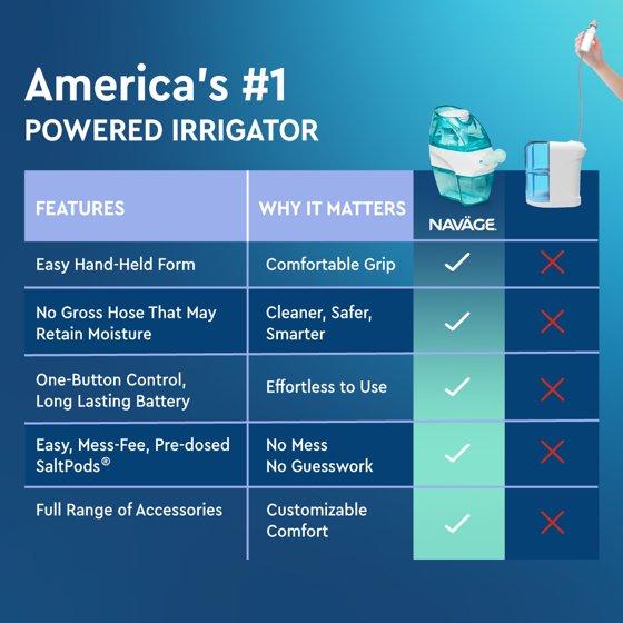 - CLEANER, SAFER, SMARTER: Discover how easy and comfortable nasal rinsing can be with Naväge: Its lightweight design allows easy one-handed use, three nose pillow sizes ensure a personalized fit, and pre-packaged SaltPods mean no mixing, no mess.