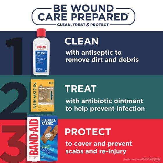 - Neosporin + Pain, Itch, Scar Antibiotic Ointment for wound care of minor cuts, scrapes & burns
