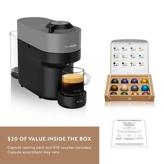- $20 OF VALUE INSIDE THE BOX: The Vertuo Pop coffee and espresso machine includes a 12-capsule sample pack (assortment may vary) and voucher for $10 off your next purchase from Nespresso.com.