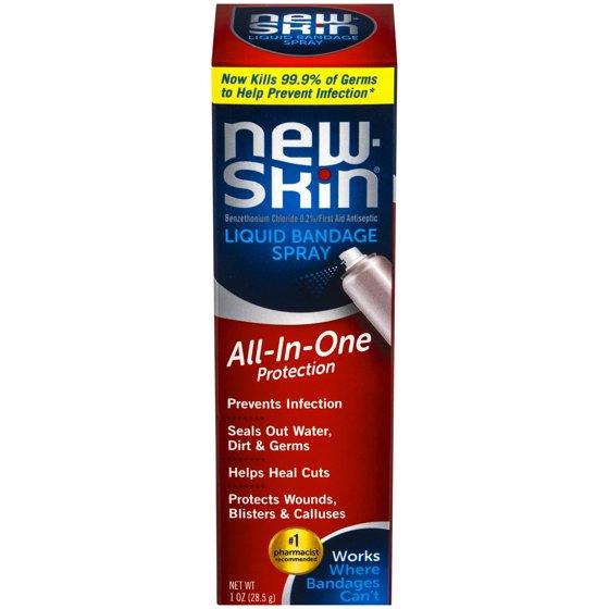 - UNLIKE ANYTHING A BANDAGE CAN DO: New Skin Liquid Bandage and New Skin Liquid Bandage Spray is a wound sealing aid unlike regular adhesive bandages. It protects your wound from germs, is antiseptic, waterproof, flexible, and stays in place and clean
