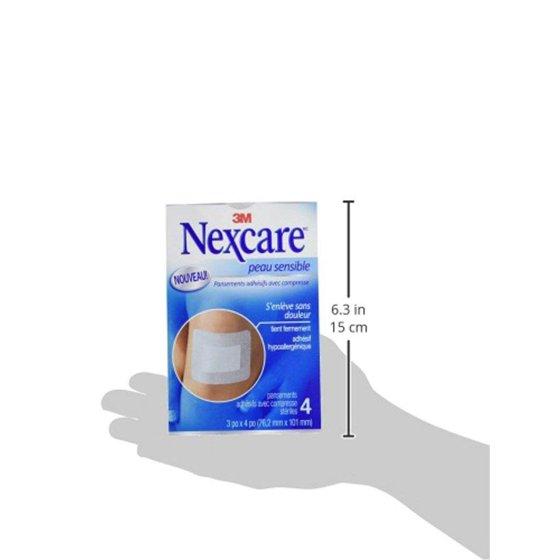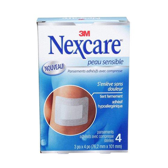 Nexcare Sensitive Skin Dressing Sterile Adhesive Pads, 3" x 4", 4-Pads