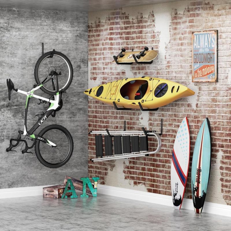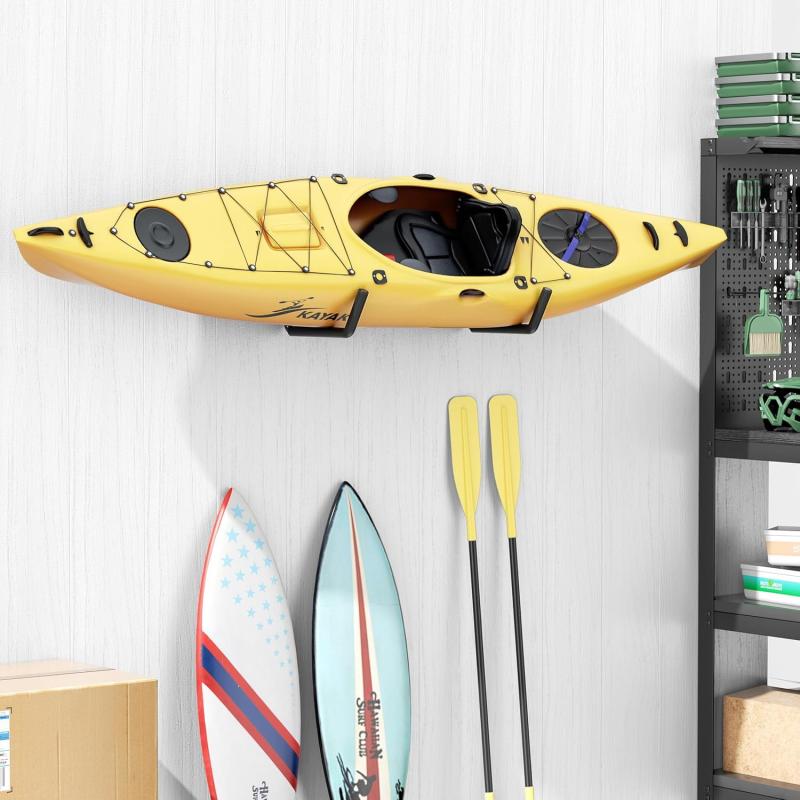 - Versatile Garage Storage Hooks: These heavy-duty wall-mounted garage hooks are ideal for storing not only kayaks but also canoes, ladders, bicycles, surfboards, snowboards, and more. They keep your garage or outdoor storage area organized while securely holding various bulky items