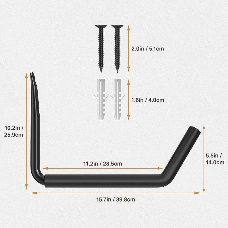 - Quick and Easy Installation: Easily mount these garage hooks with the included guide. High-quality stainless steel screws and anchors are provided, along with an extra set for added convenience. The reinforced stainless steel ensures durability and prevents breakage during use