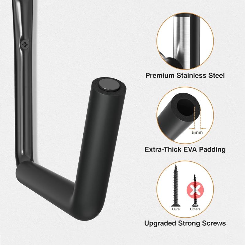 - Extended EVA Foam Padding: The garage hooks feature extra-thick, extended EVA foam padding that fully covers the front end of the hooks. This padding provides excellent cushioning and prevents slipping, ensuring your items are protected from scratches during storage