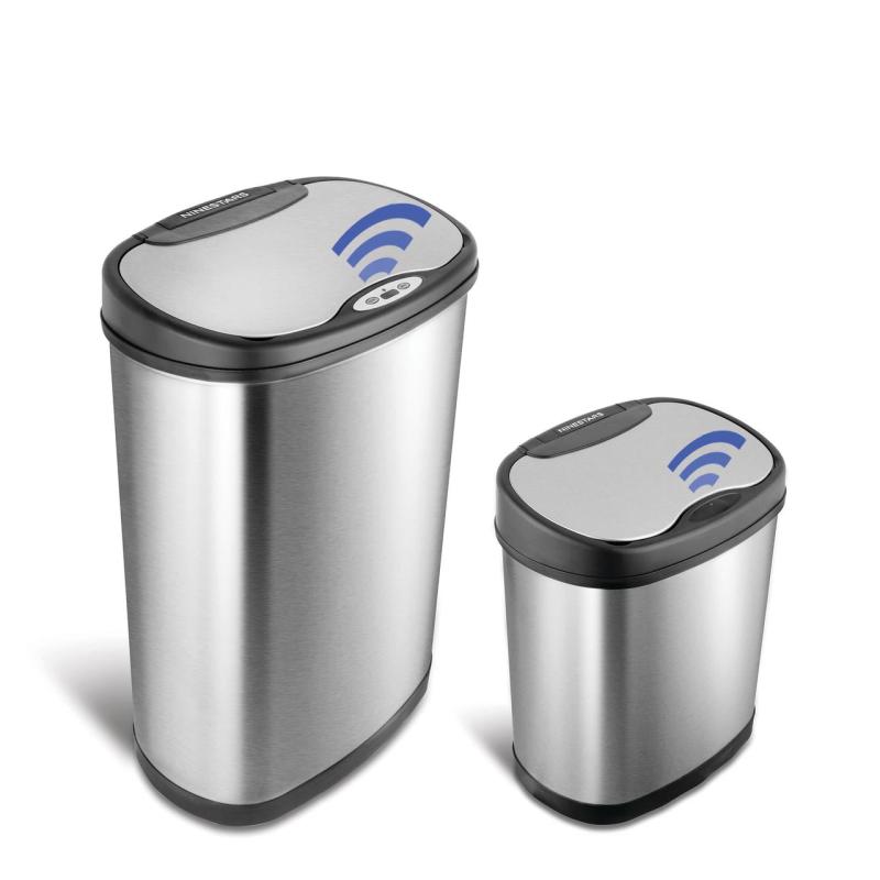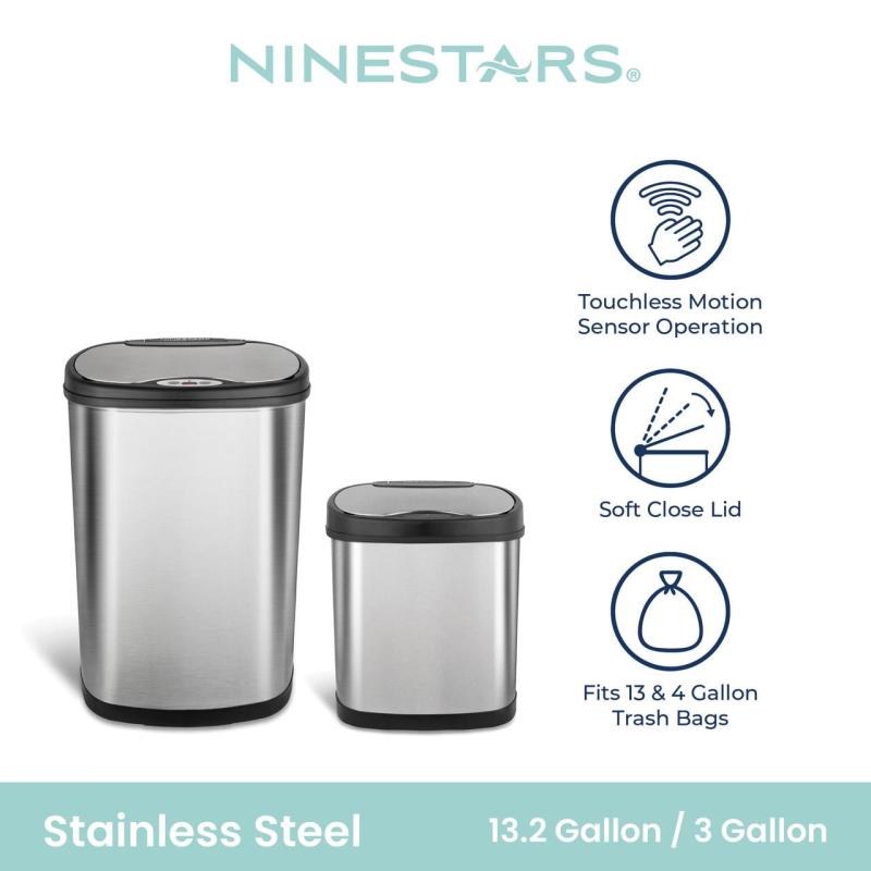 - Nine Stars Automatic Kitchen Trash Can Combo, 13 and 3 Gallon Stainless Steel Motion Sensor Garbage Bin with Soft Close Lid, Silver