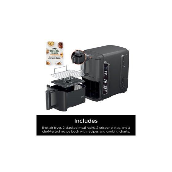 Ninja DoubleStack 4-in-1 8 Qt Air Fryer w/ Smart Finish, Space Saving, 2 Baskets, SL200 Black