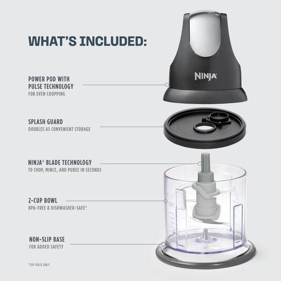 Ninja Express Chop 2-Cup Food Processor, Mince, Puree, One-Touch, Non-Slip Base, Dishwasher Safe, NJ100WM Black