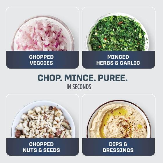 - EXPRESS MACHINE FOR ALL: Chop, mince, and puree ingredients into soups, sauces, dressings, topping, dips and more!