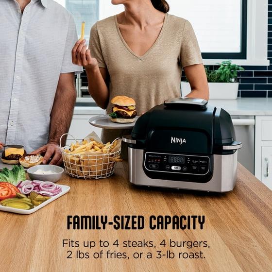Ninja Foodi 4 Qt Electric Indoor Grill w/ 4 Functions, Air Fry, Cyclonic Grilling Technology, Ceramic Coated, AG300 Black