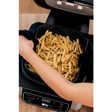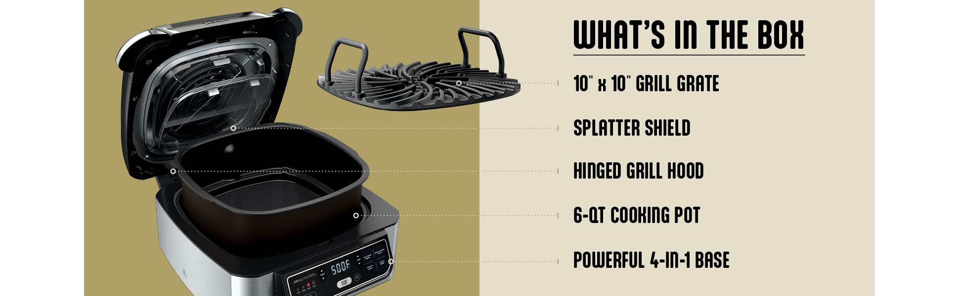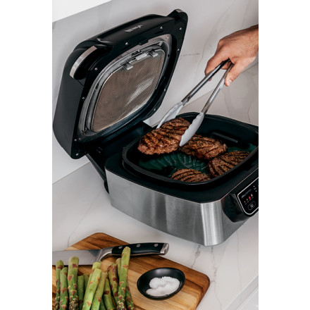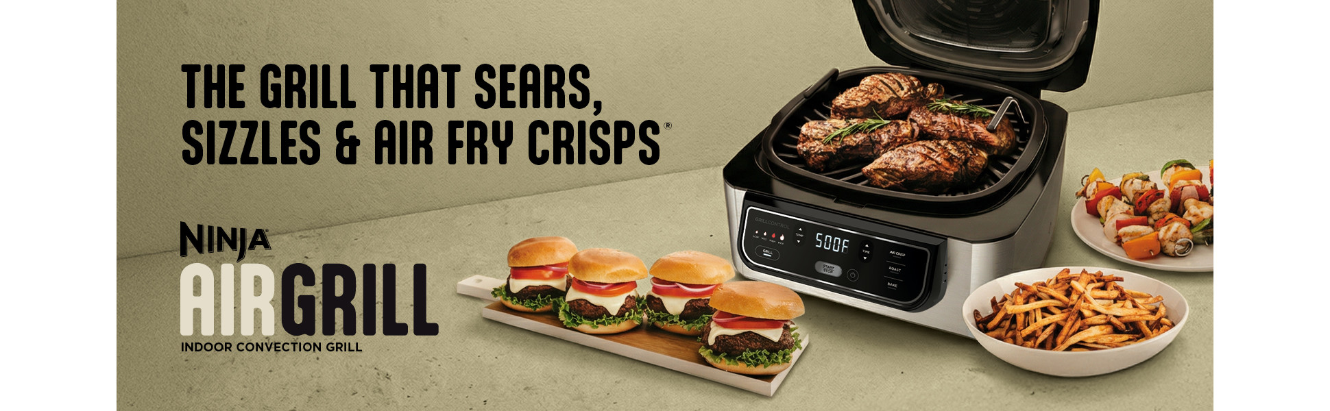 - The Ninja Foodi Grill. The grill that sears, sizzles, and air fry crisps. Indoor grill and air fryer