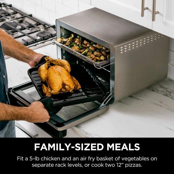 - Extra-Large Countertop Oven Capacity: 2-level even cooking, no rotating required—fit a 5-lb chicken and an air fry basket of vegetables, 2 12-in pizzas, or a 12-lb turkey