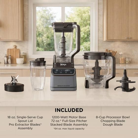 Ninja Grand Kitchen System 72-Oz Blender, 4 Presets, Smoothie, Chop, Dough, 3 Speeds, 1200W, KS500 Gray