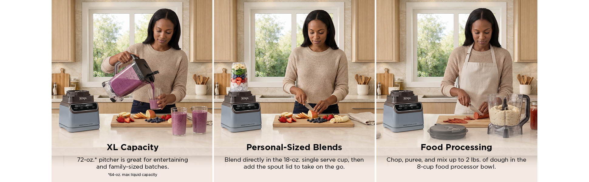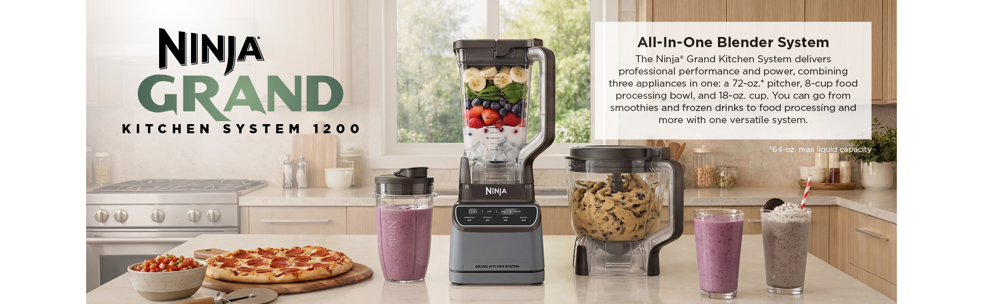 - 72-oz.* Full-size Pitcher: Great for making large batches for the whole family. *(64-oz. max liquid capacity)