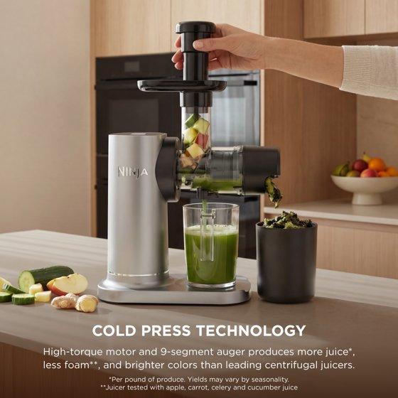 Ninja NeverClog 150 Watts Cold Press Juicer with 18oz Jug, 30oz Pulp Container, 2-Speed, Compact
