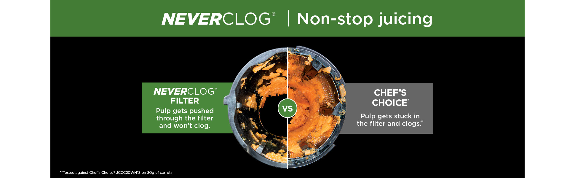 - NON-STOP JUICING: Powers through tough ingredients for powerful, non-stop juicing.
