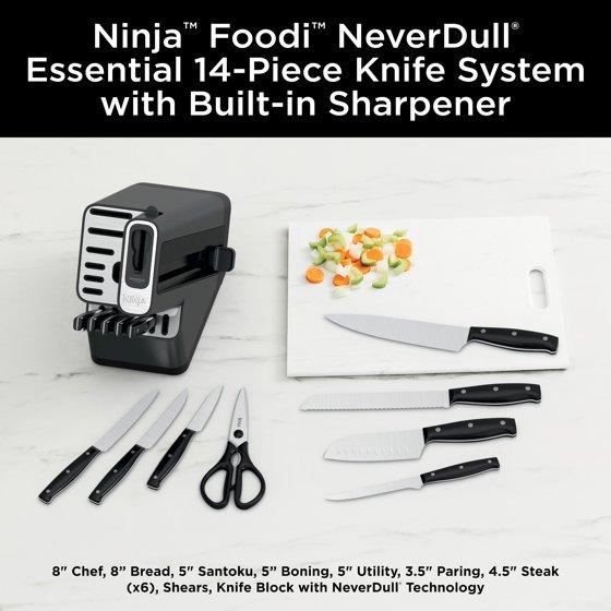 Ninja NeverDull 14-Piece Stainless Steel Essential Knife System with Built-in Sharpener, K12014 Black/Gray