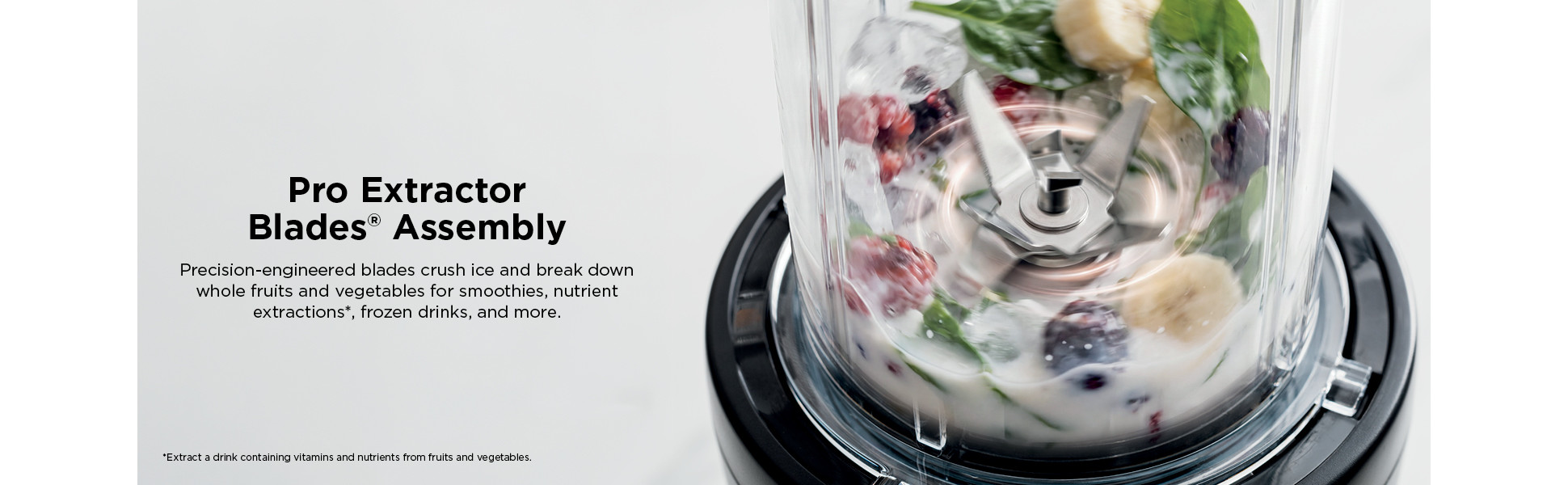 - Pro Extractor Blades Assembly Easily Crushes Ice And Breaks Down Whole Fruits And Veggies To Create Nutrient Extractions*. *extract A Drink Containing Vitamins And Nutrients From Fruits And Vegetables.