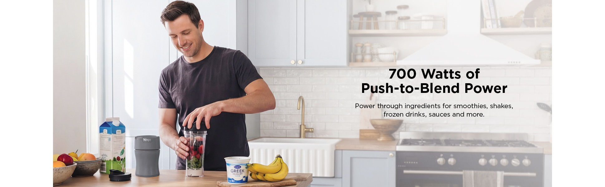 - The Intuitive 700-watt Push-to-blend Motor Base Powers Through Everything Inside The Cup To Give You The Best Of Ninja Blending.