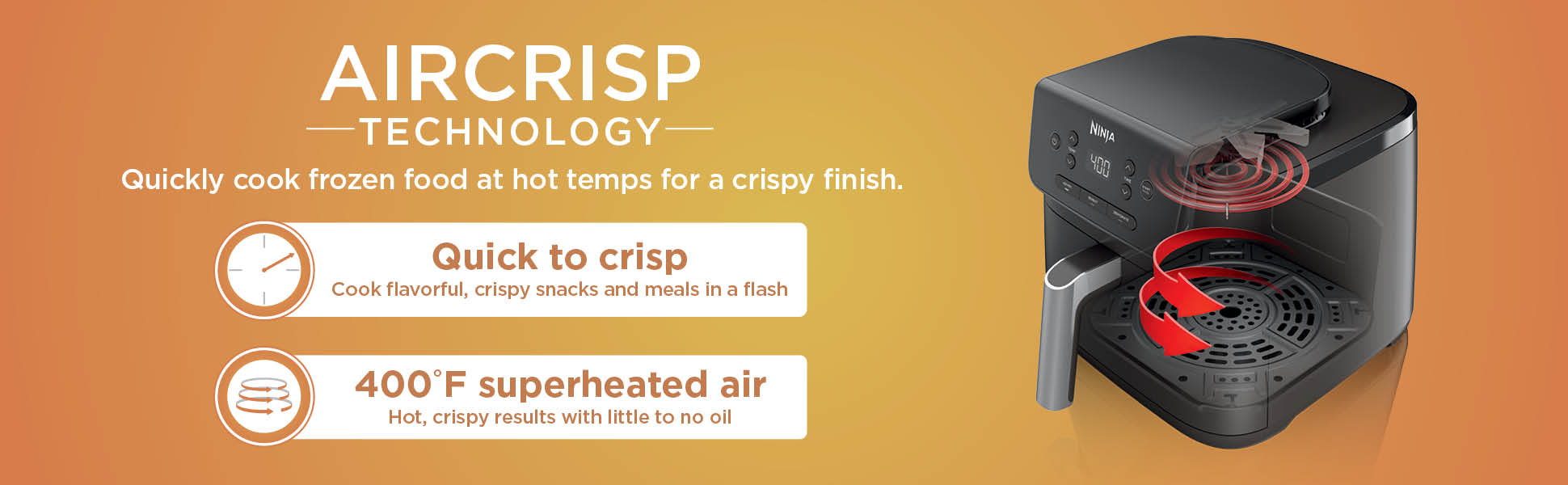 - Air Crisp Technology: 400℉ superheated air surrounds food for hotter, crispy results with little to no oil