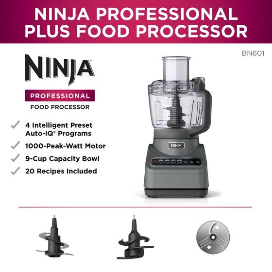 Ninja Professional 9 Cup Food Processor, 1000 Watts, Auto-iQ 4 Presets, BN601 Silver