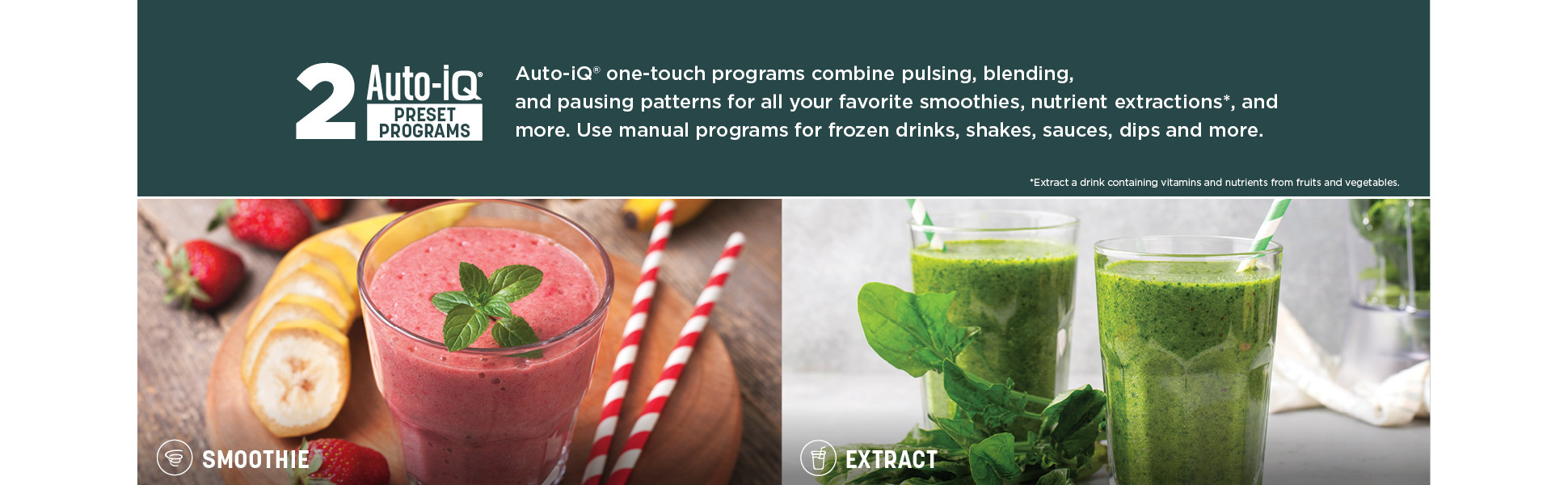 - 2 Preset Auto-iq Programs Allow You To Create Smoothies And Nutrient Extractions*, All At The Touch Of A Button. *extract A Drink Containing Vitamins And Nutrients From Fruits And Vegetables