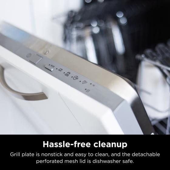 - HASSLE-FREE CLEANUP: The removable grill plate is nonstick and easy to clean, and the perforated mesh lid is detachable and dishwasher-safe