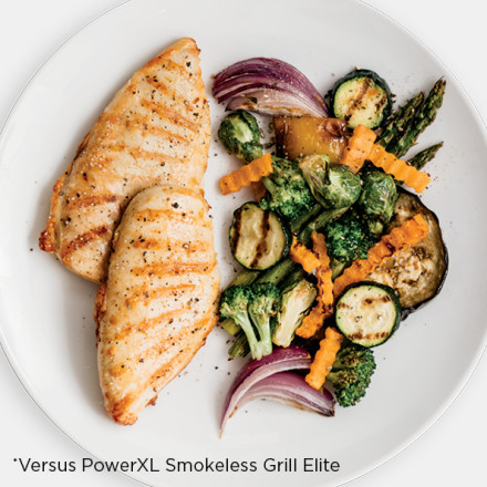 - 500F MAX HEAT: Reach temperatures of up to 500F for high-heat grilling and searing and get better char-grilled marks* right from your kitchen (*vs. Power XL Smokeless Grill Elite)