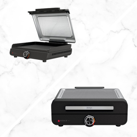 - *WHAT’S INCLUDED: Ninja Sizzle™ Indoor Grill, 14’’ Nonstick Grill Plate, & Quick Start Guide with 10 Recipes *Griddle plate sold separately.