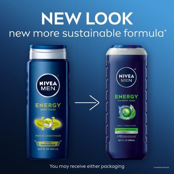 - One 16.9 fluid ounce bottle of NIVEA MEN Energy Body Wash
