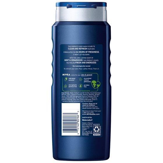 NIVEA MEN Energy Body Wash for Men with Mint Extract and Cedarwood Scent, 16.9 fl oz