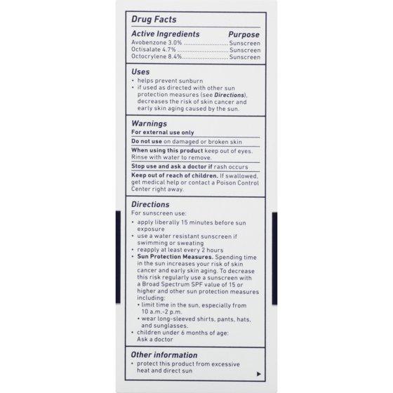 Active Ingredients: Avobenzone 3.0%, Octisalate 4.7%, Octocrylene 8.4% (Sunscreens); Inactive Ingredients: Water, Isopropyl Palmitate, Glycerin, Tapioca Starch, Cetearyl Alcohol, Glyceryl Stearate Citrate, Tocopheryl Acetate, Panthenol, Chamomilla Recutita (Matricaria) Flower Extract, Hamamelis Virginiana (Witch Hazel) Bark/Leaf Extract, 1,2-Hexanediol, Carbomer, Ethylhexylglycerin, Maltodextrin, Caprylic/Capric Triglyceride, Acrylates/C10-30 Alkyl Acrylate Crosspolymer, Sodium Hydroxide, Trisodium EDTA, Phenoxyethanol, Piroctone Olamine, Fragrance