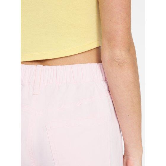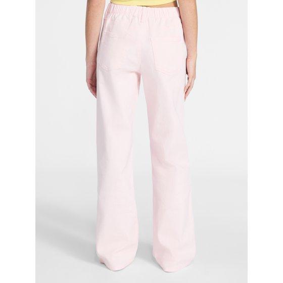 - Features: Belt loops; back elastic waistband; wide leg; stretch denim
