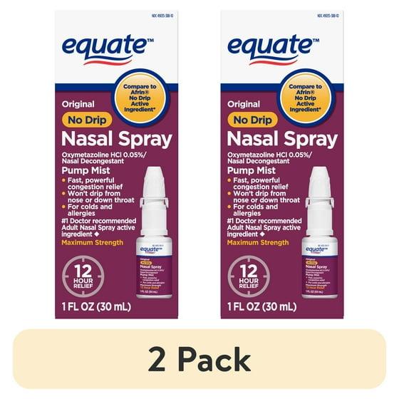 (2 pack) No Drip Nasal Spray, Oxymetazoline HCl, Pump Mist, 12 Hour Nasal Decongestant, 1 Ounce