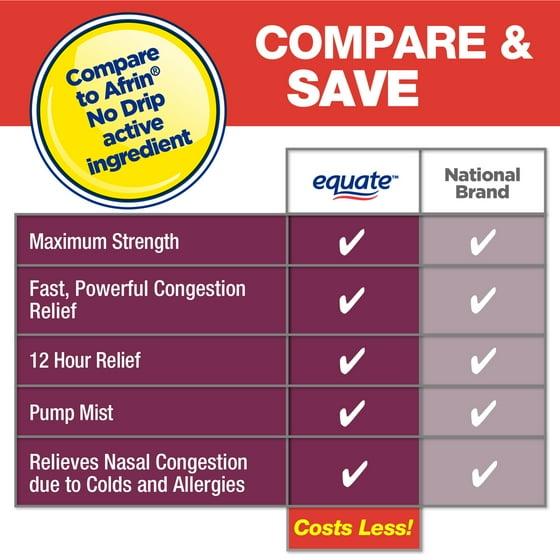 Compare to Afrin No Drip active ingredient. No Drip Nasal Spray, Oxymetazoline HCl, provides fast, powerful congestion relief in a pump mist. This nasal decongestant won’t drip from your nose or down your throat. Get soothing, maximum strength relief of nasal and sinus congestion and sinus pressure due to the common cold, hay fever and upper respiratory allergies. This nasal mist contains Oxymetazoline HCl, the number one doctor recommended adult nasal spray active ingredient, of U.S. physicians surveyed by an independent market research firm. In original formula, this nose spray shrinks nasal membranes so you can breathe more freely. Safety Sealed. This product is gluten free.