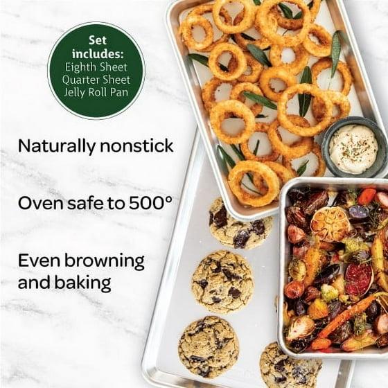Nordic Ware Naturals 3 Piece Aluminum Bakeware Set with Jelly Roll, Quarter & Eighth Sheet Rectangular Cookie & Baking Sheet Pans