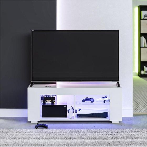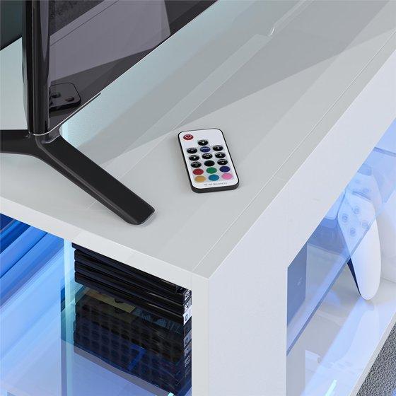 NTense LED TV Stand with Glass Shelves for TVs up to 55", White Gloss