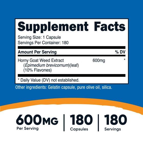 Nutricost Horny Goat Weed Extract (Epimedium) 600mg Capsules, 180 Servings - Gluten Free & Non-GMO Supplement