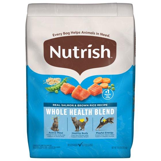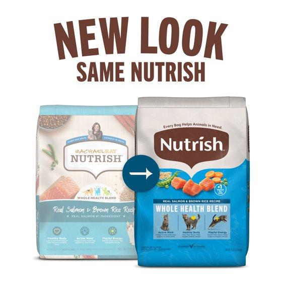 - Super premium food for cats. Natural food for cats with added vitamins, minerals & amino acids. No artificial flavors or artificial preservatives. No ground corn, wheat or soy ingredients. No poultry by-product meal or fillers. Simple. That's why I like my recipes. That's why I work with a team of cat nutrition experts to create Rachael Ray Nutrish Real Salmon & Brown Rice Recipe made with simple, natural ingredients with added vitamins and minerals & amino acids. Real salmon is the no. 1 ingredient. Then I combined it with wholesome grains and veggies. Know what I didn't put in? Ground corn, wheat, soy, poultry-by product meal, artificial flavors or artificial preservatives. Nothing but good, wholesome food here! Brown Rice: Is an excellent source of essential nutrients and wholesome fiber for your cat. Beet Pulp: A wholesome fiber source that naturally provides prebiotics, which help support health digestion. Taurine: As essential amino acids for kitten & cat health. It helps supports kitten growth and your cat's vision & heart health throughout his or her life. Real Salmon: Is always no. 1 ingredient. Cats love our fresh salmon - a tasty & easily digestible protein, which helps support healthy organs & lean muscle. It's naturally rich in omega-3 fatty acid, too, to help support kitten & cat cognitive health. Salmon Meal: A naturally-rich source of essential amino acids & omega-3 fatty acid, which help support your cat's healthy skin & shiny coat. Small kibble size - big taste! Our team of cat nutrition experts developed a new kibble pieces with your cat's unique palate in mind. We start with carefully-chosen ingredients in delectable flavors for the optimal crisp & crunch your cat will love. We also make our smooth kibble an ideal small size, making it easy for your cat to chew & swallow. Only the best, high-quality, carefully chosen ingredients. Every trusted ingredient supplier goes through rigorous qualification and testing. Back by 80+ years of focused excellence in pet nutrition. Real real recipes. Real ingredients. Real good. Ingredient Safety: At Ainsworth Pet Nutrition, we demand high-quality ingredients from our suppliers and require thorough testing to ensure product safety. We are committed to producing outstanding products every day and take great pride in ensuring our foods are wholesome and, most importantly, safe. Quality Guarantee: We are committed to making great-tasting nutritious pet foods. If you or your pet are not completely satisfied with this product, we will provide a full refund. Call -1800-323-7738 weekdays from 9 a.m. - 9p.m. EST, or weekends from 9 a.m. - 5 p.m. EST. nutrish.com. For questions or comments, please call 1-800-323-7738 weekdays or visit us online at nutrish.com. nutrish.com. Learn more: nutrish.com. Learn more: nutrish.com/ingredients. Buy a bag. Help a cat (Buy a bag. Help a cat. The Rachael Ray Foundation helps animals who may not have someone who loves them as much as we love ours. A portion of the proceeds from the sale of this product will be donated to the Rachael Ray Foundation, which helps animals in need. Fund are used for food, medical supplies, treatments and more. Every Nutrish purchase you make helps us continue helping cats in need). Racheal Ray Foundation. A portion of proceeds helps animals in need. Dry pet food safely cooked in only U.S. Safely USA cooked facilities with the world's best ingredients with the world's best ingredients.
