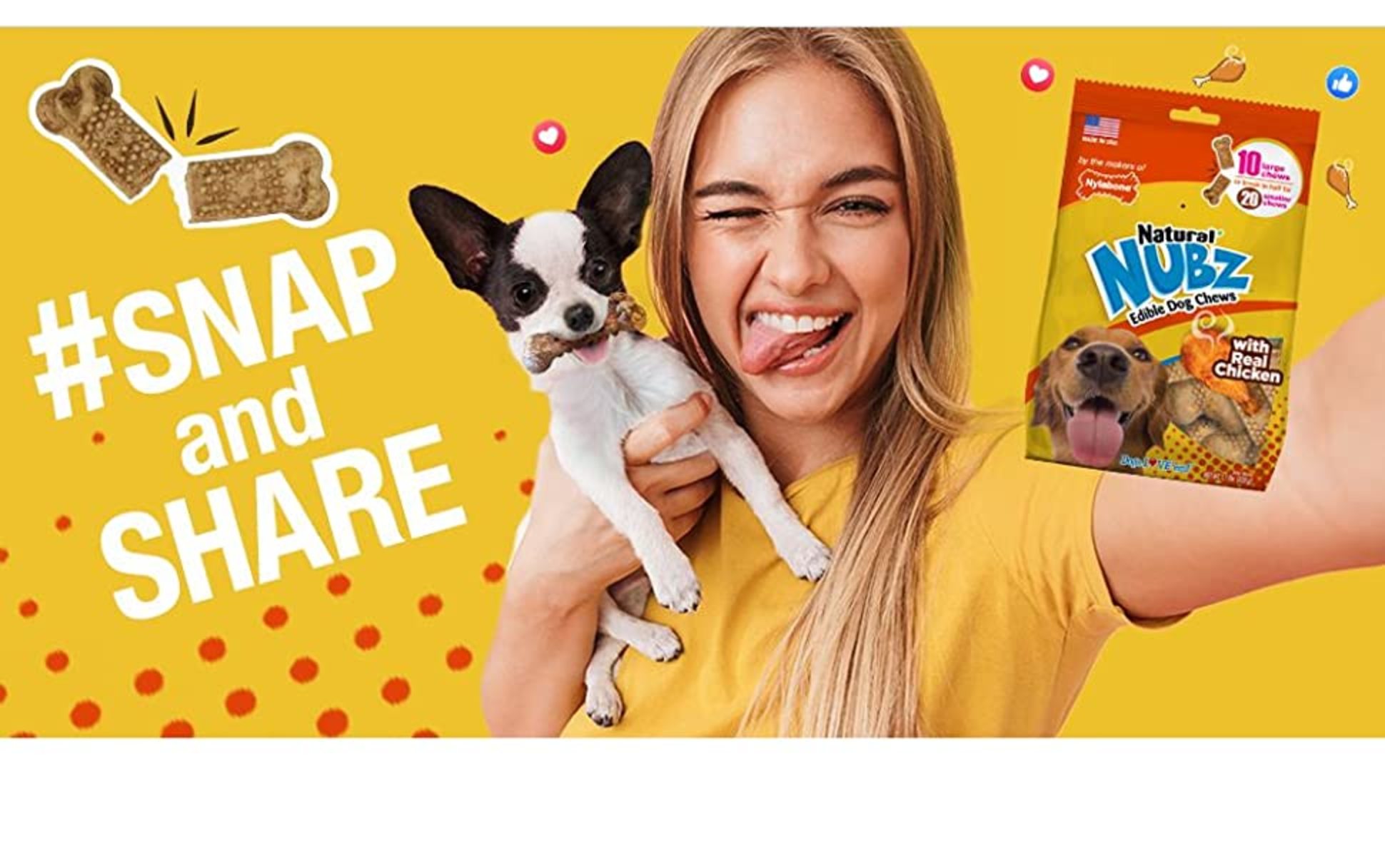 Nylabone Nubz Chicken Dog Treats, All Natural Edible Long Lasting Dry Dog Chew, 10 Ct