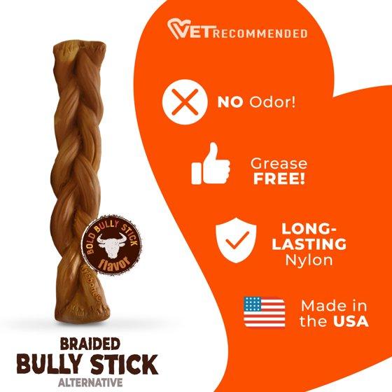 - Braided bully stick alternative offers all the benefits of the real thing—without the odor or grease!