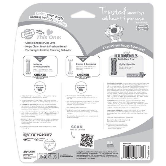 - Includes 2 puppy chew toys and 1 edible chew treat perfect for every developmental stage