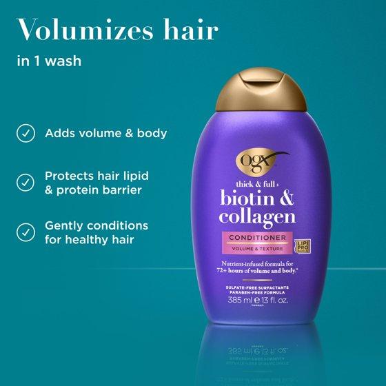 - OGX Thick & Full + Biotin & Collagen Volumizing Conditioner for hair with 72+ hours of volume & body